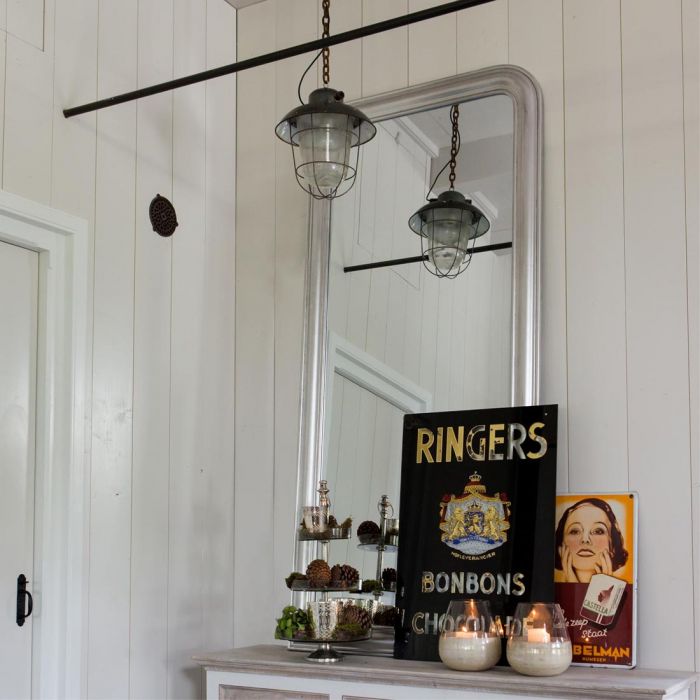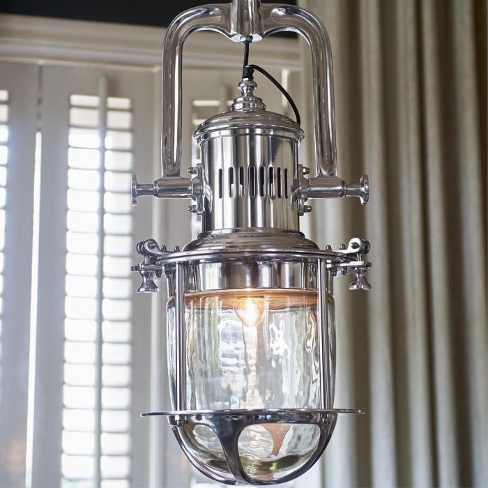 A Riviéra Maison masszív alumínium függőlámpája indusztriális megjelenést kölcsönöz a belső térnek.
