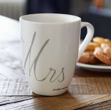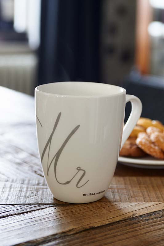 12,5 cm magas porcelán Riviéra Maison bögre Mr és Mrs felirattal.