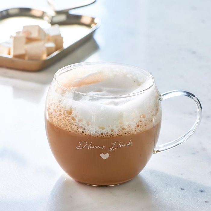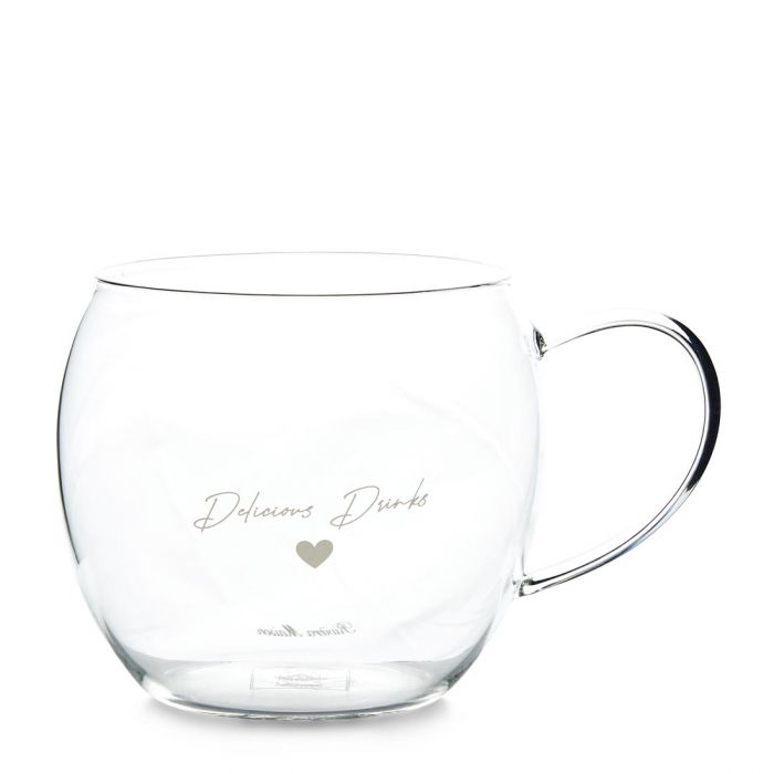 Fogyaszd a legfinomabb kávé- vagy teavariációkat ebből az elegáns, Love Delicious Drinks felirattal ellátott Riviéra Maison pohárból!
